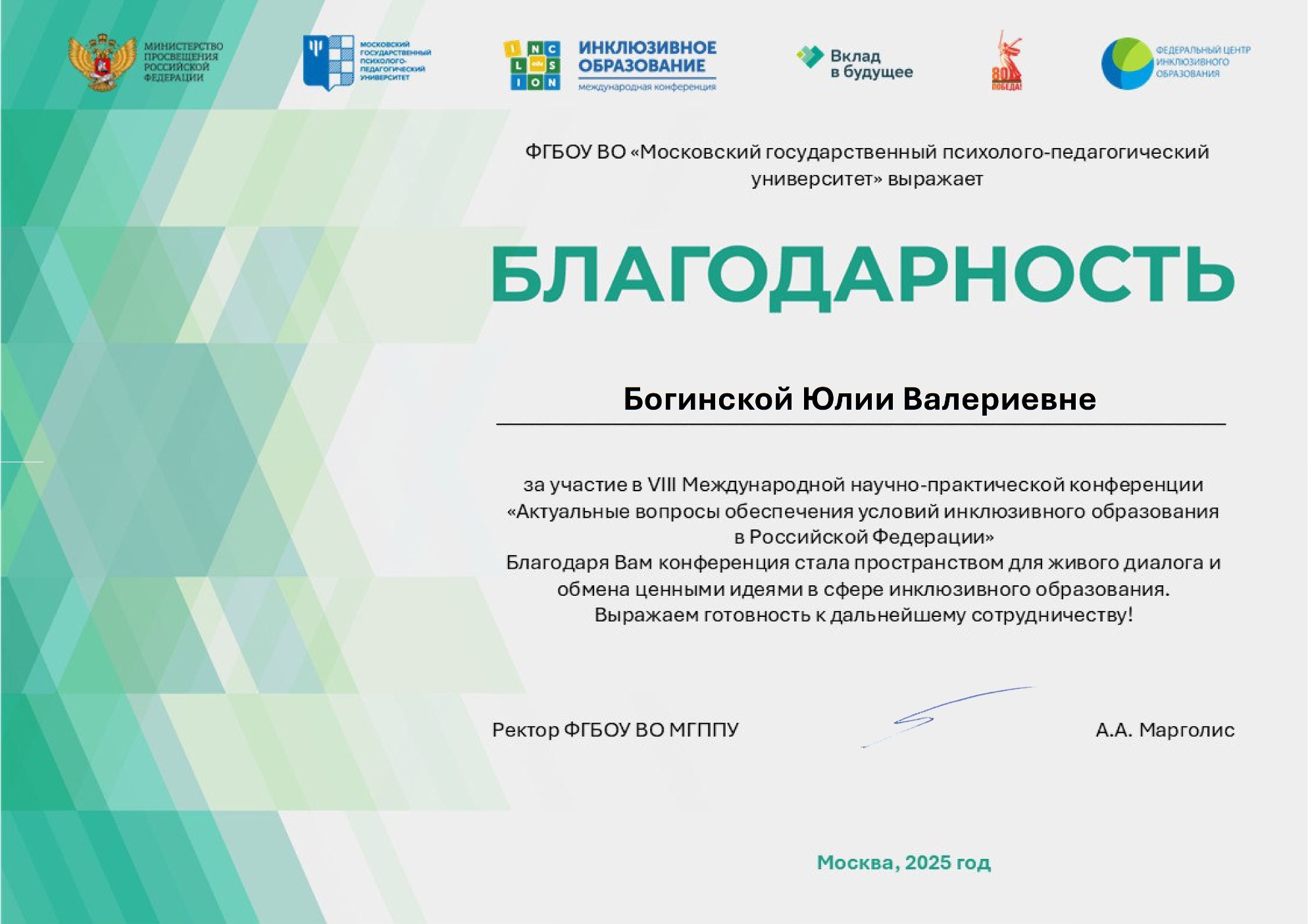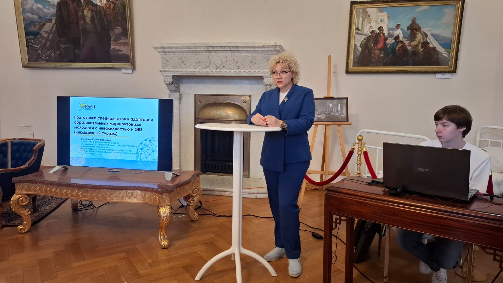 В Москве заведующей кафедрой психолого-педагогического и специального образования, руководителем РУМЦ КФУ Богинской Ю.В. на Национальном чемпионате «Абилимпикс»-2025 и Сетевом (отраслевом) форуме «Инклюзивное высшее педагогическое образование: тенденции и перспективы развития» были представлены возможности онлайн-конструктора «Социально-психологическая карта студента с инвалидностью и ОВЗ». Команда проекта (Богинская Ю.В., Галлини Н.И., Захарова А.В., Блыщак Т.А.) разрабатывает цифровой продукт - онлайн-конструктор с интеллектуальной системой оптимизации обучения и сопровождения студентов разных нозологических групп с учетом их потребностей и возможностей.